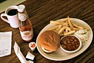 Cook hamburger patties however you like and add any of the additives. Usually served with french fries and chips.