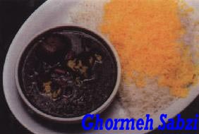 This dish may not look appetizing, but it's a delicious combination of herbs. It goes very well with chelow. It's the persian version of chili, but it's a stew. The recipe is: